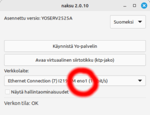 - Seuraavaksi sinulta kysytään tutkintoverkon verkkolaitetta. Valitse sama verkkolaite, jonka katsoit Naksusta vaiheessa 1.