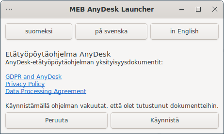 - lukio on tutustunut AnyDesk-ohjelman yksityisyysdokumentteihin ja voi hyväksyä ohjelman käytön palvelimellaan