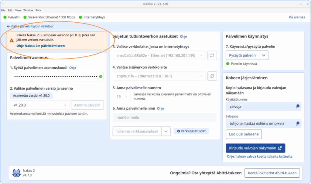 - Päivitä palvelin (palvelinohjelmisto) Naksu 2:ssa.